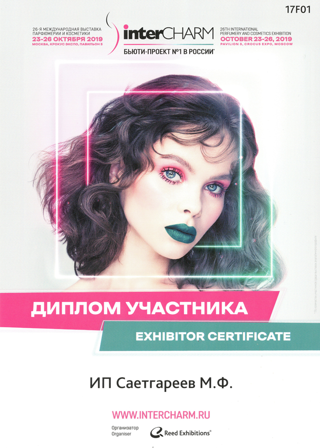 Диплом участника 26-й международной выставки парфюмерии и косметики InterCHARM